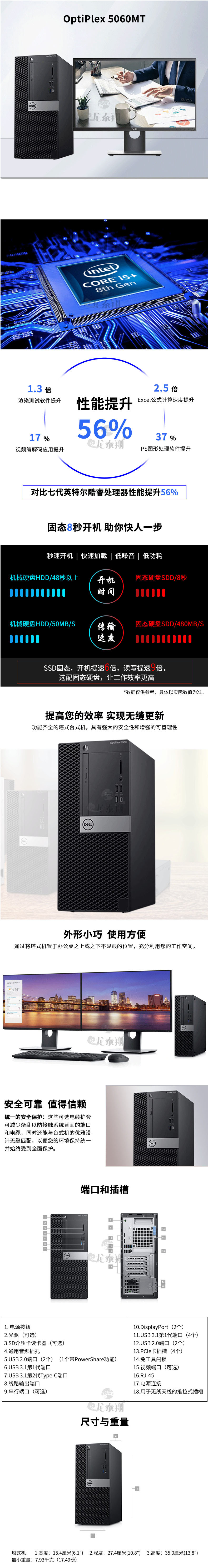 商品名稱:戴爾(Dell) 5060MT 臺式電腦(i5-8500/8G/128GSSD+1TB/集顯/23.8寸顯示/三年保修) 單位:臺