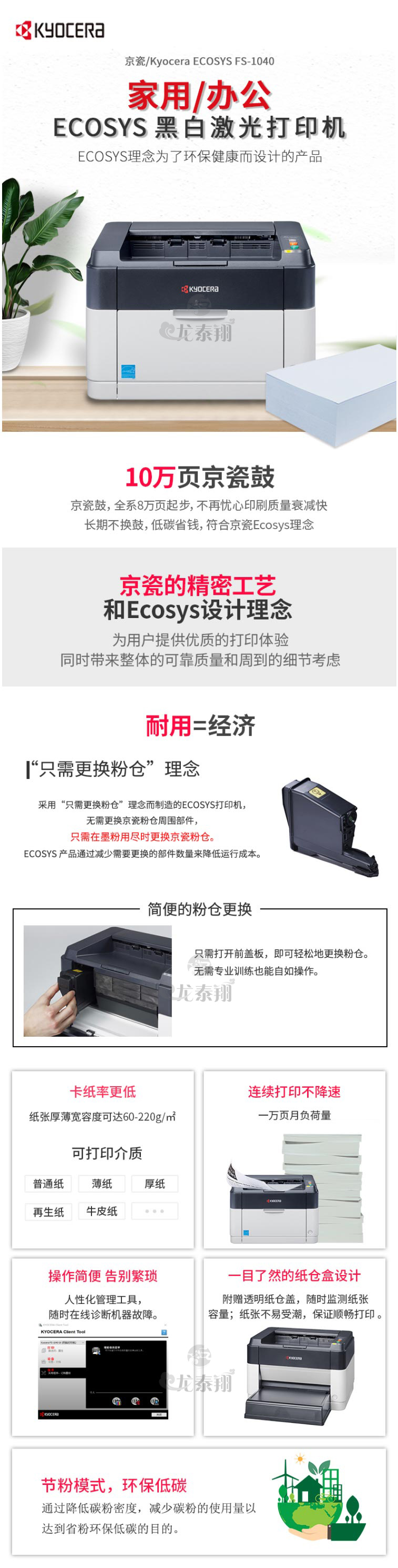商品名稱:京瓷(KYOCERA) FS-1040 A4黑白激光打印機(jī) 單位:臺(tái)
