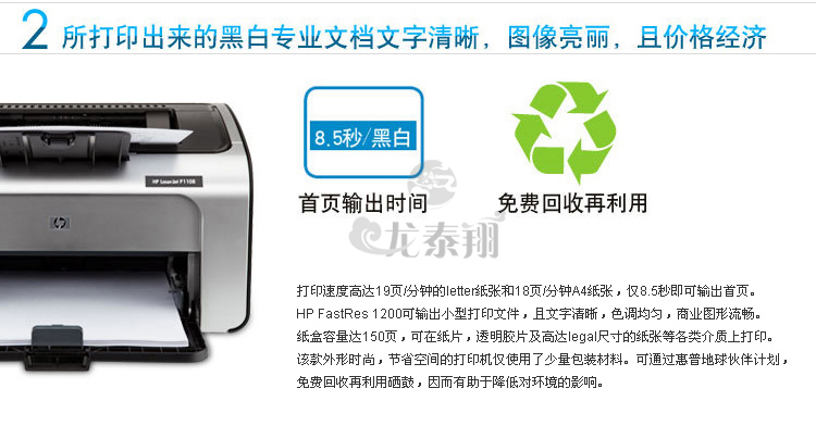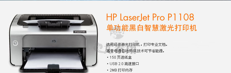 商品名稱:惠普(HP)LaserJet Pro P1108 A4黑白激光打印機(USB接口) 單位:臺