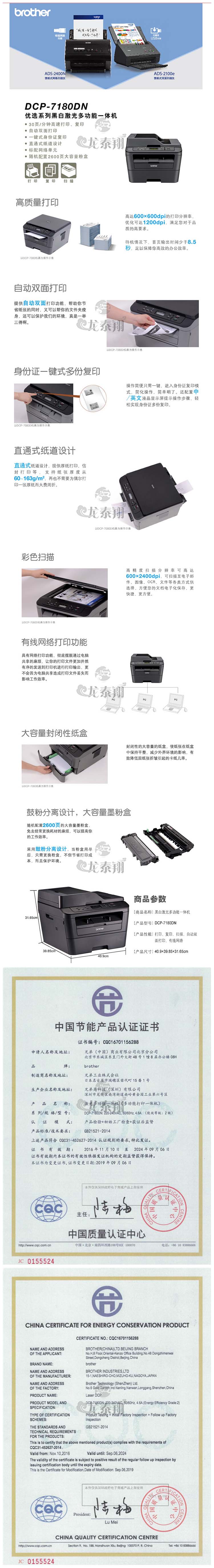 自營(yíng)兄弟(brother) DCP-7180DN A4黑白激光多功能一體機(jī)(自動(dòng)雙面打印/復(fù)印/掃描/有線網(wǎng)絡(luò)) 單位:臺(tái)