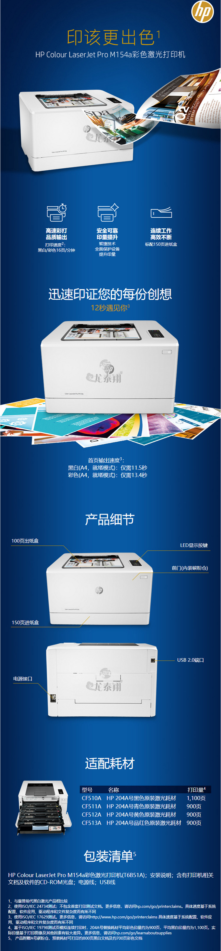 商品名稱:惠普(HP) M154a A4彩色激光打印機(USB接口) 單位:臺