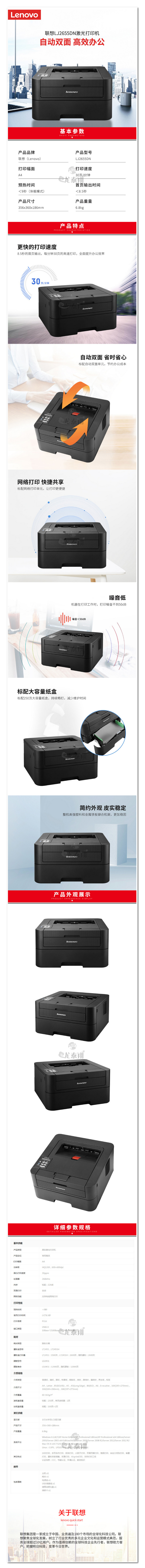 自營聯(lián)想(Lenovo) LJ2655DN 激光打印機(jī)(A4黑白/30頁/雙面/網(wǎng)絡(luò)) 單位:臺