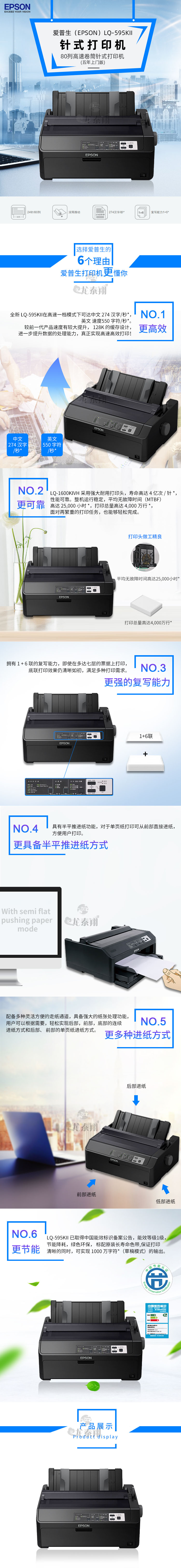 商品名稱:愛普生(EPSON) LQ-595KII 針式打印機(jī)(80列平推針式/出入庫單/稅票) 單位:臺(tái)