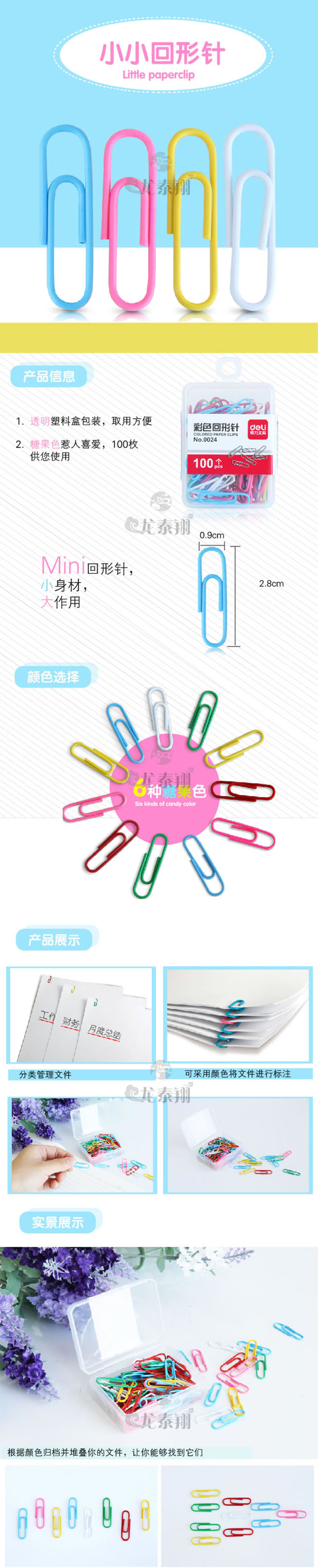 商品名稱:得力(deli) NO.0024 回形針 100只/彩色 單位:盒