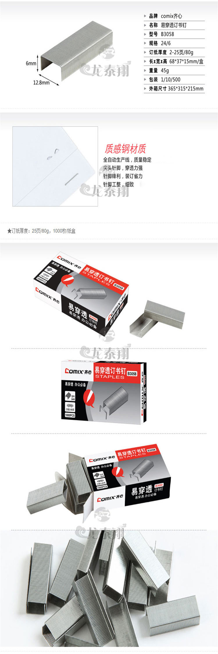 商品名稱:齊心(Comix) B3058 訂書針 24/6-12號-10盒/包 單位:盒