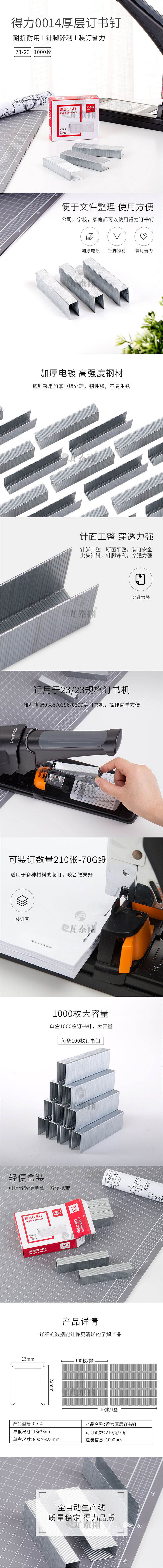 商品名稱:得力(deli) NO.0014 訂書(shū)針 厚層23/23 單位:盒
