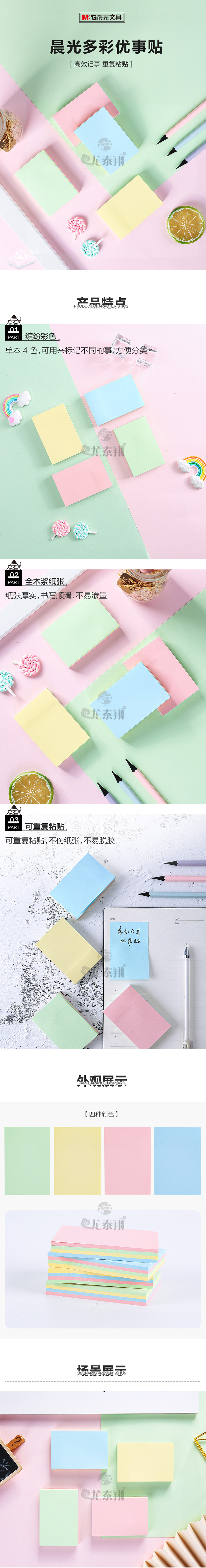 商品名稱:晨光(M&G) YS-09 便利貼 6本/包76*51MM/100頁*本/四色自粘便條紙 單位:本