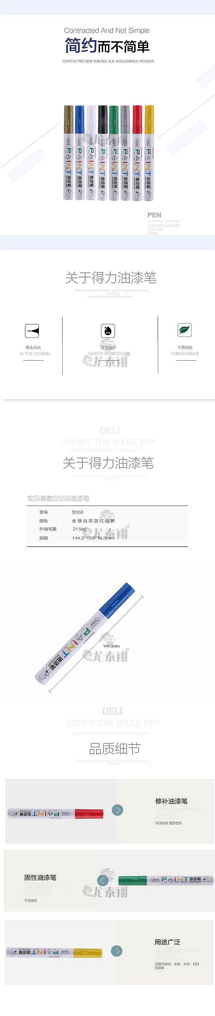商品名稱:得力(deli) S558 油漆筆 2.0/12支一盒/金色 單位:盒