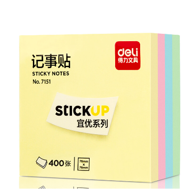 商品名稱:得力(deli) 7151 記事貼 76*76MM/400張/包/混色 單位:包