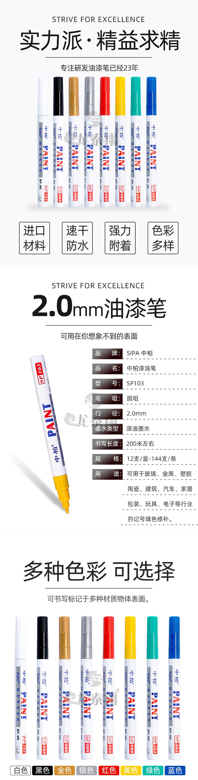 自營(yíng)中柏 SP103 油漆筆 2.0/12支*盒/小/黑色 單位:支