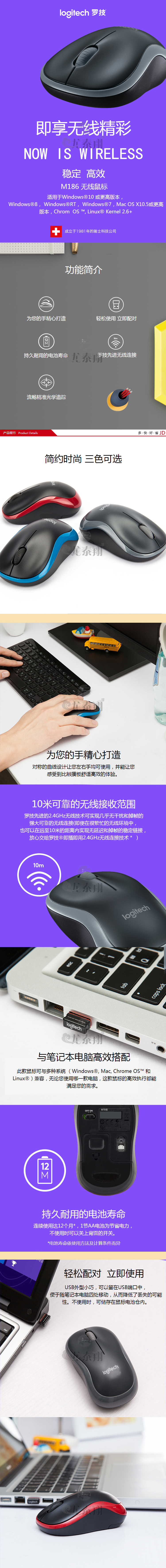 自營(yíng)羅技 M186 鼠標(biāo) 100×58×34mm/無(wú)線(xiàn)光電/黑色 單位:個(gè)