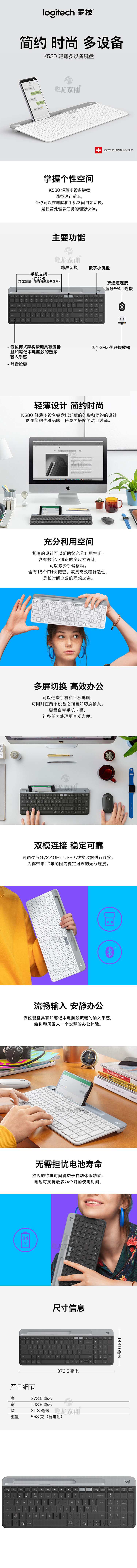商品名稱:羅技 K580 無線藍牙鍵盤 373.5*143.9MM/黑色 單位:個